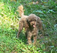 She is a dark brown Tiny Toy, that is 6 lbs, 9 in tall, Very sweet loving girl, She has Velvet Touch and E&J teacup bloodlines,Her daddy is the Tiny 3.0 lb teacup CJ